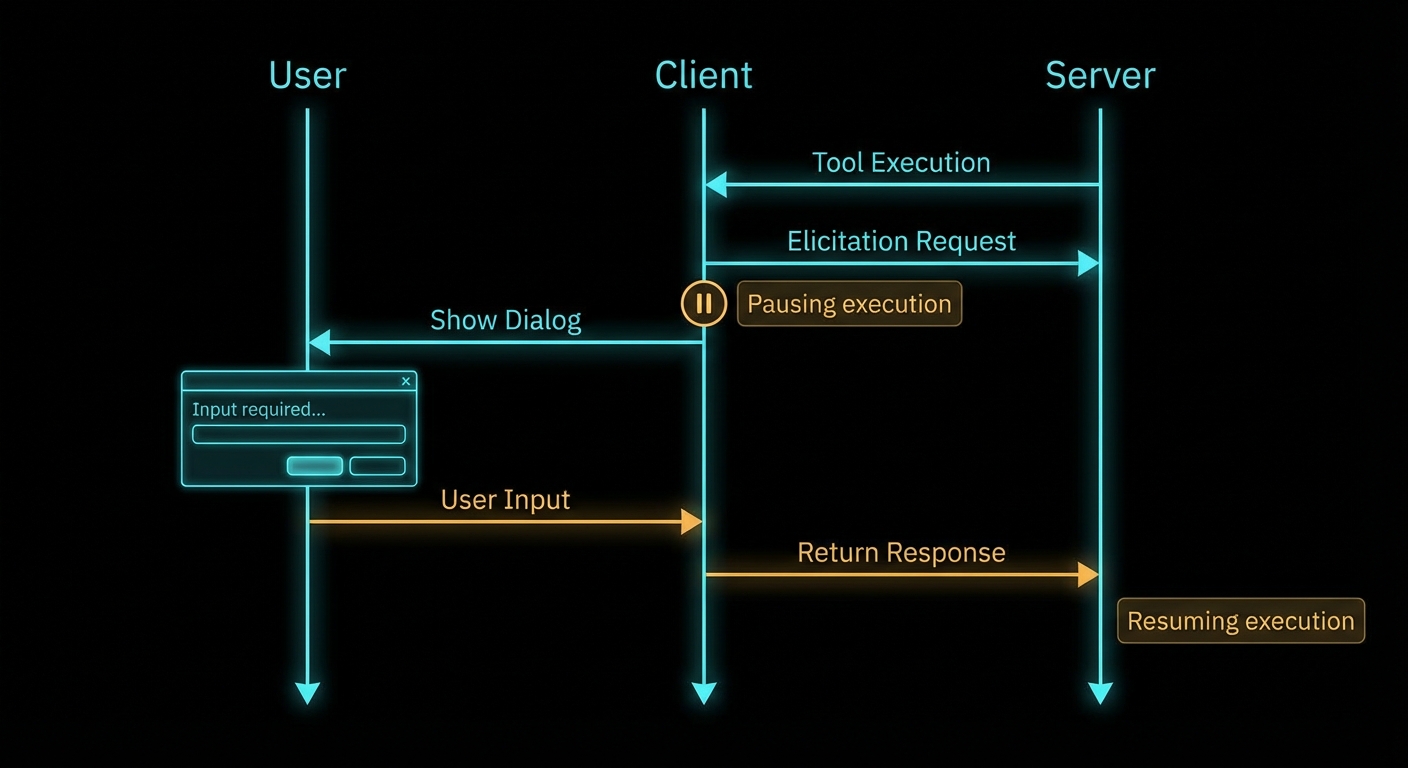 Elicitation is for input the server cannot know at design time – confirmation of a specific action, a password, runtime context. If the information can be a tool argument, make it a tool argument. Elicitation adds a round-trip to the user and breaks the automated flow.