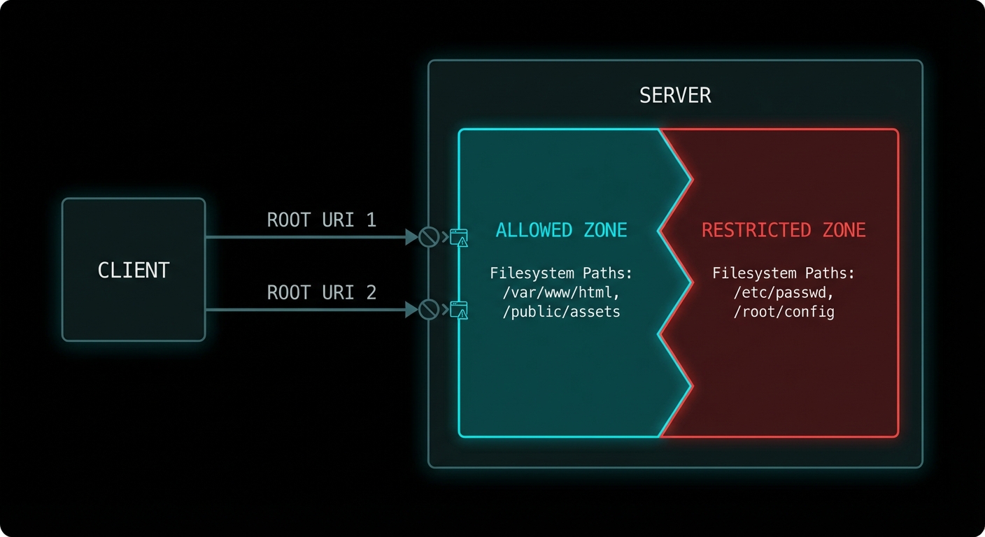 Roots are advisory in the current spec – the protocol does not force enforcement on the server. This means a badly implemented server can simply ignore the roots and access anything it wants. In a security-conscious deployment, the host should use OS-level sandboxing (chroot, Docker volumes, seccomp filters) to enforce the boundaries that roots only hint at.